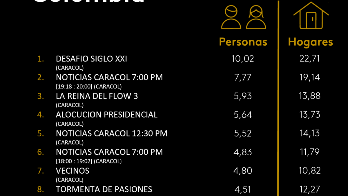 ÍNDICES DE SINTONÍA - CORTESÍA DE KANTAR IBOPE MEDIA