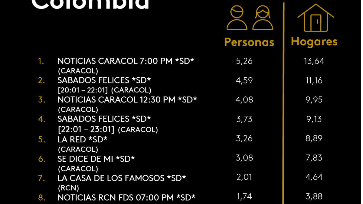 ÍNDICES DE SINTONÍA - CORTESÍA DE KANTAR IBOPE MEDIA
