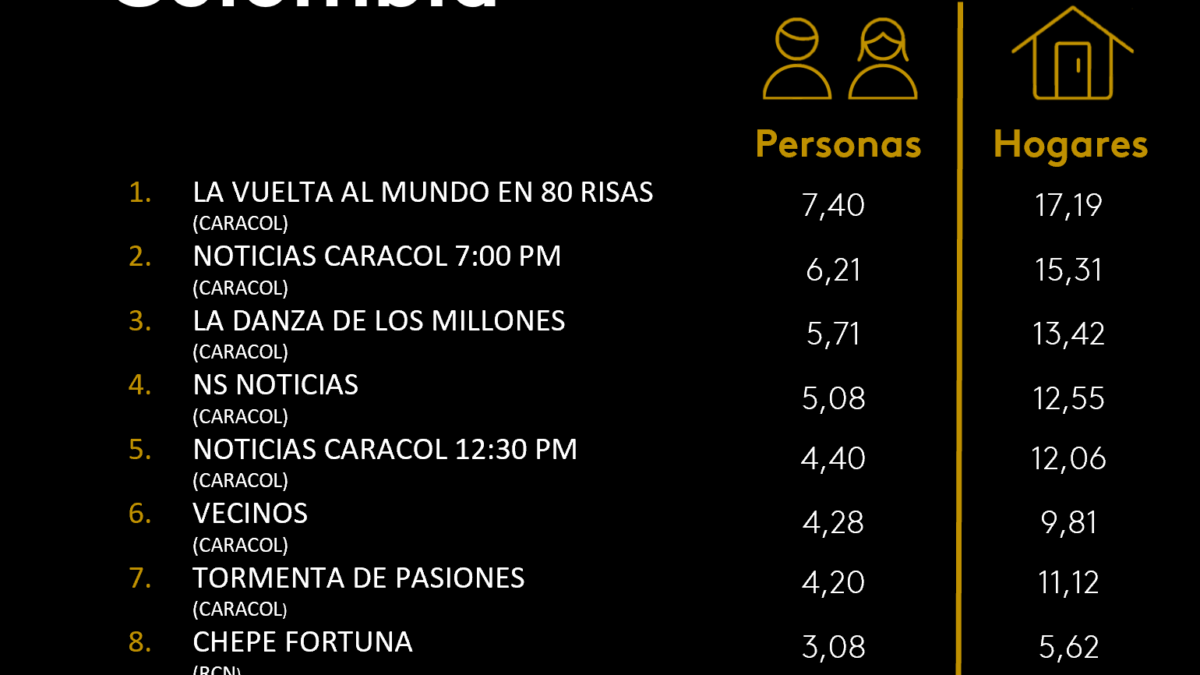 ÍNDICES DE SINTONÍA - CORTESÍA DE KANTAR IBOPE MEDIA