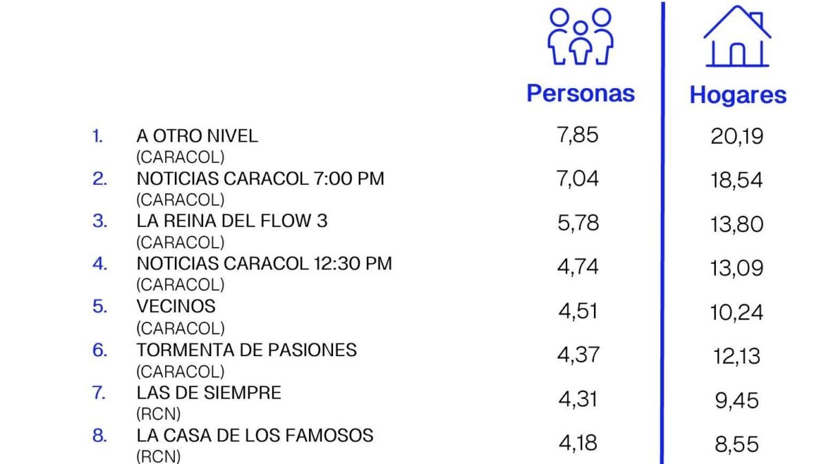 ÍNDICES DE SINTONÍA - CORTESÍA DE KANTAR IBOPE MEDIA