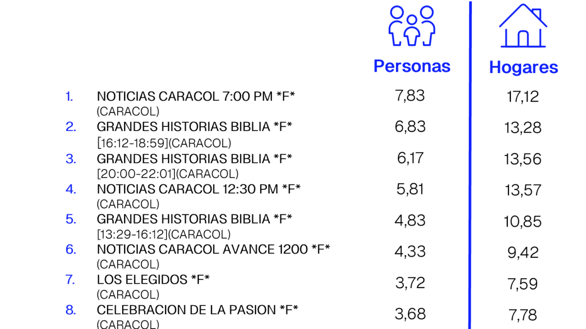 ÍNDICES DE SINTONÍA - CORTESÍA DE KANTAR IBOPE MEDIA