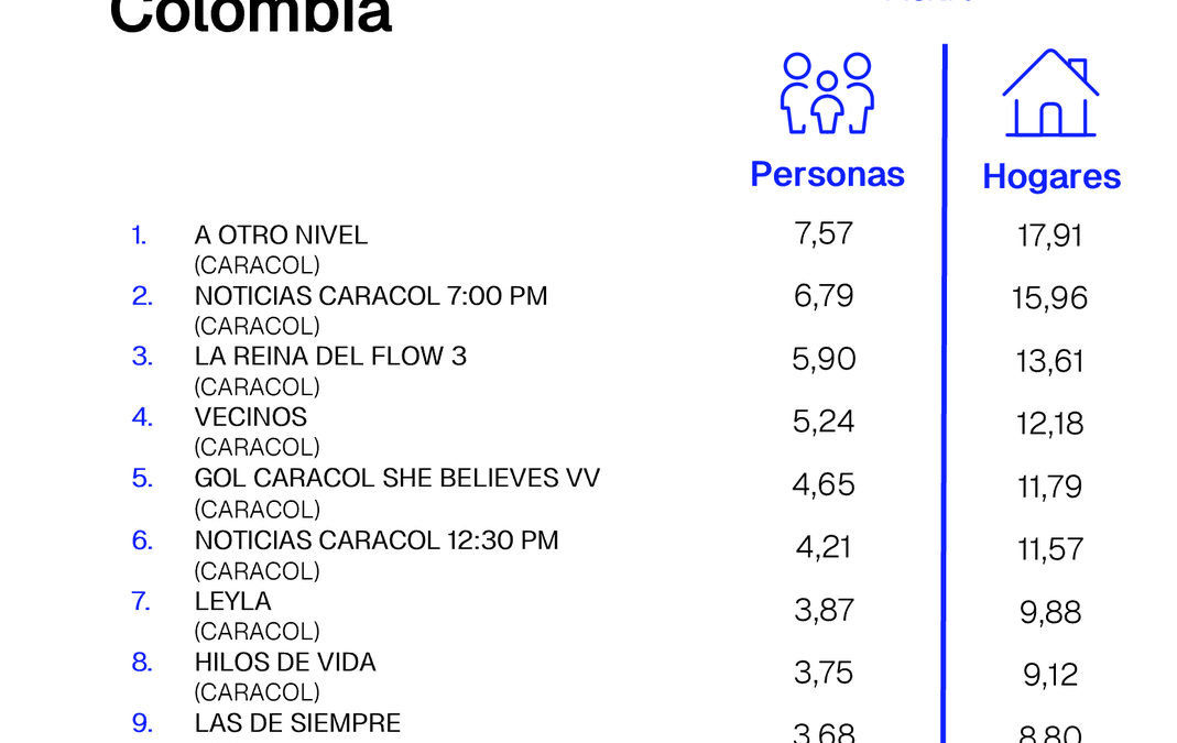 ÍNDICES DE SINTONÍA - CORTESÍA DE KANTAR IBOPE MEDIA