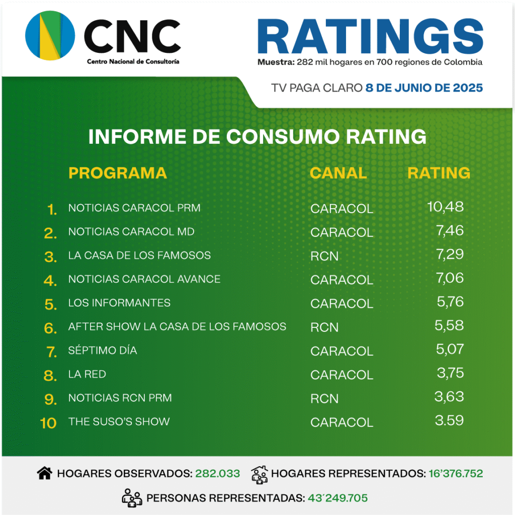 INICIO > ÍNDICES DE SINTONÍA - CORTESÍA CENTRO NACIONAL DE CONSULTORÍA > 8 DE JUNIO DE 2025