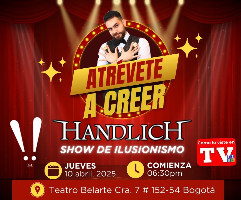 Con solo 239 asientos disponibles, esta es la única oportunidad de vivir de cerca el arte del ilusionismo en su máxima expresión. Handlich, reconocido por su precisión y capacidad para fusionar la magia con storytelling impactante, ha sido aclamado recientemente en el Festival Internacional del Humor, consolidándose como una de las grandes figuras del ilusionismo en Colombia.