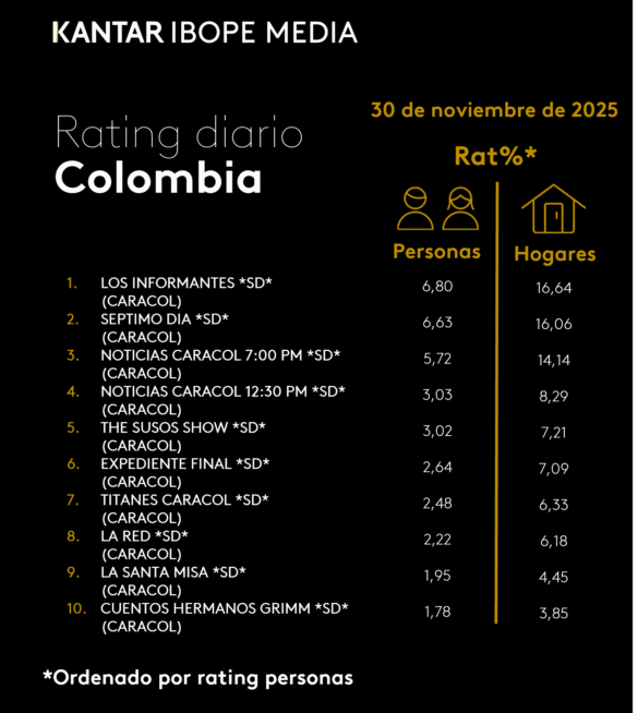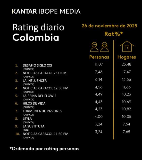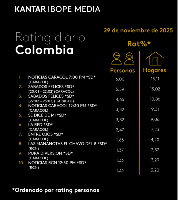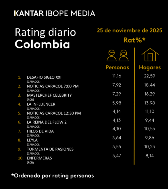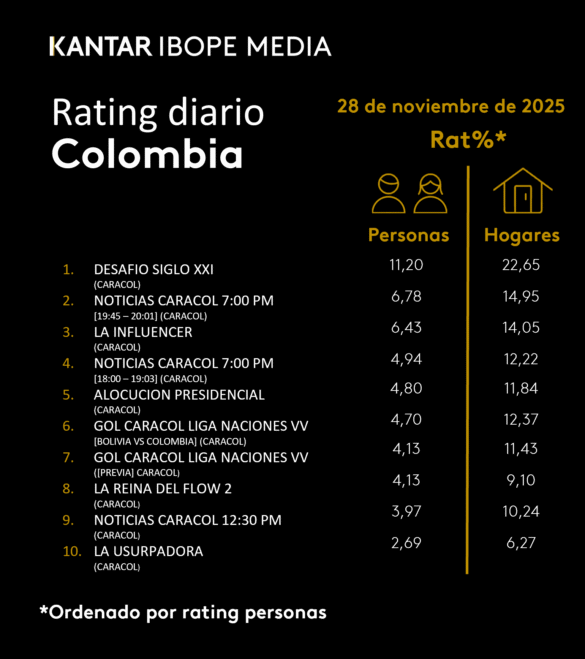 Categoría: ÍNDICES DE SINTONÍA – CORTESÍA DE KANTAR IBOPE MEDIA