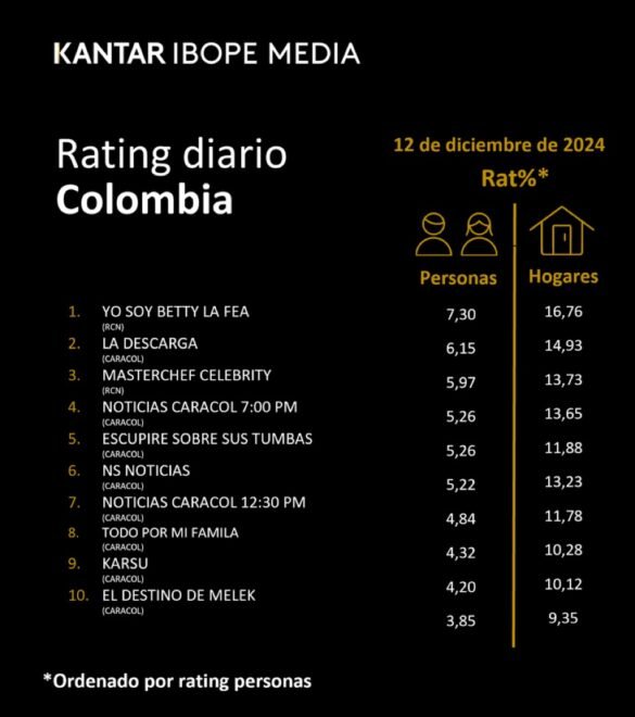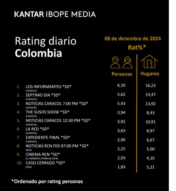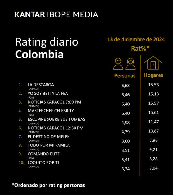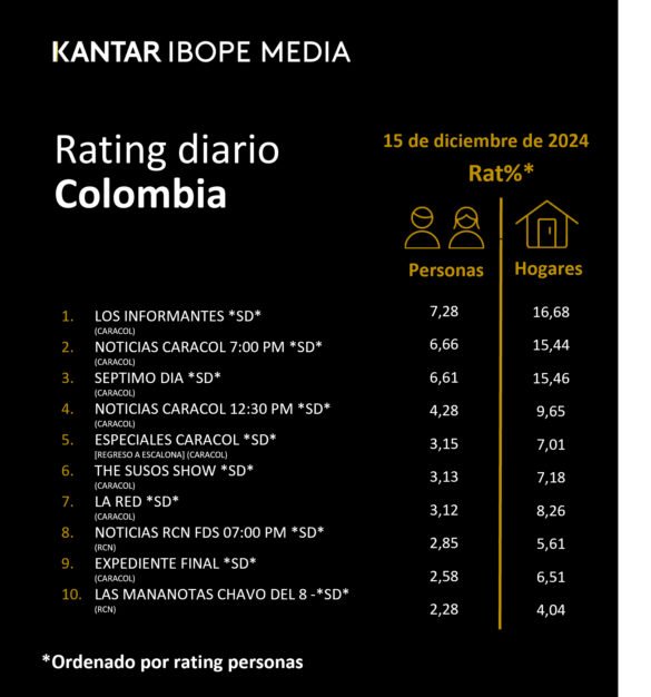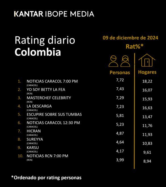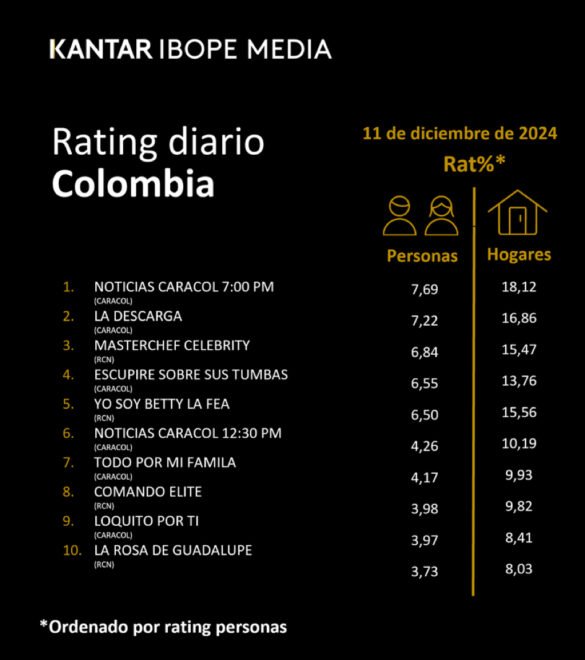 Categoría: ÍNDICES DE SINTONÍA – CORTESÍA DE KANTAR IBOPE MEDIA