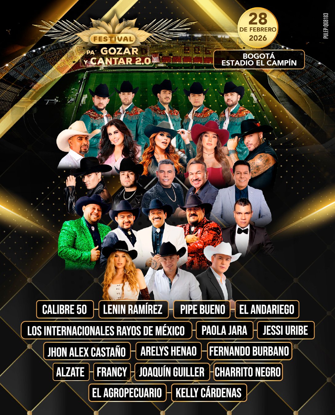 Este 28 de febrero, el Estadio El Campín abrirá sus puertas para el Festival Pa’ Gozar y Cantar 2.0, el cual se ha consolidado como el encuentro más grande del género, uniendo en un solo escenario a grandes exponentes de la música popular y regional a nivel nacional e internacional.