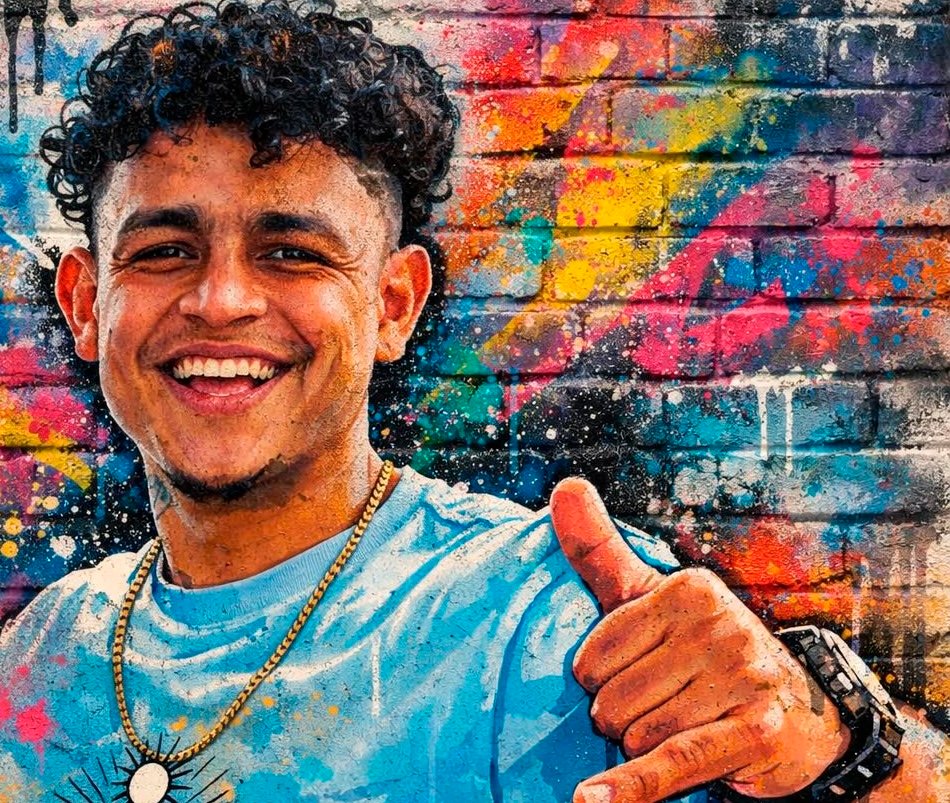 Juan Sebastián, “Raíces’, nació en Cartagena. Llegó a Medellín después de atravesar un episodio de abuso que lo llevó a una profunda depresión. Ingresó al programa en el 2024, hoy hace parte del sector turístico de las escaleras eléctricas de la comuna, donde además comparte su voz y su historia a través del rap.