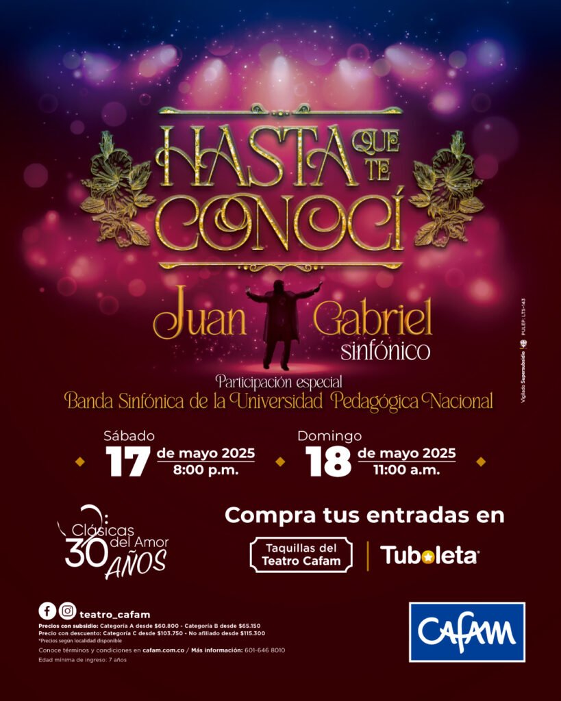 En esta oportunidad Clásicas del Amor, contará con la Banda Sinfónica de la Universidad Pedagógica Nacional, para vestir de gala todas y cada una de las canciones que hicieron historia en la vida musical de quien fuera conocido como el Divo de Juárez. Así surge JUAN GABRIEL SINFONICO