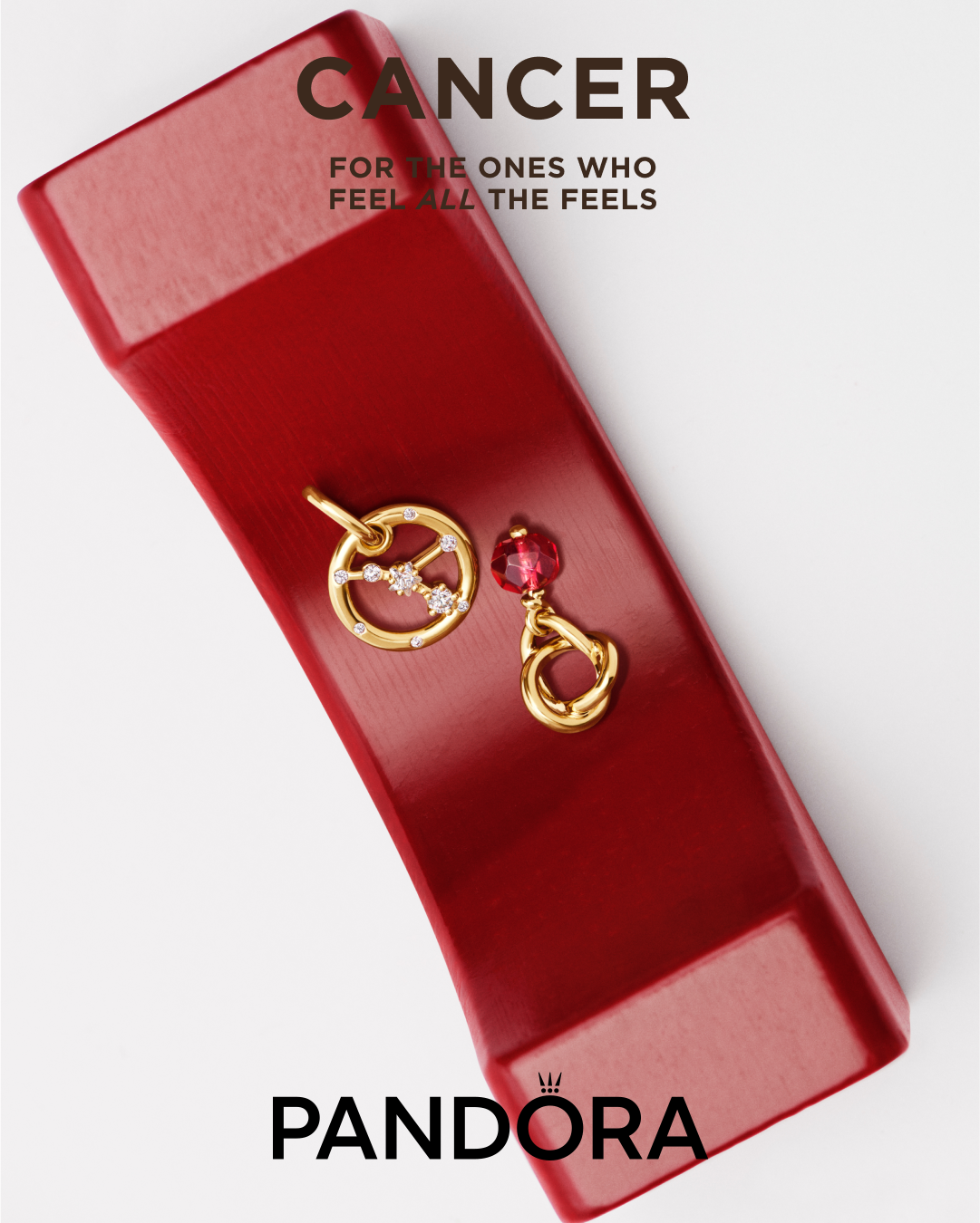 - Cáncer, el signo del hogar y las emociones profundas, se manifiesta en un charm que honra la sensibilidad, la protección y el vínculo con lo íntimo. Un diseño que evoca la ternura y la intuición que define a quienes nacen bajo esta constelación.