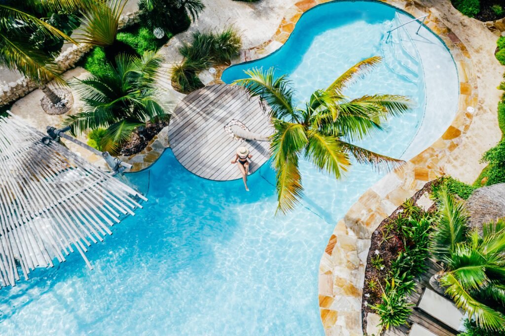 Hoy en día, la propiedad cuenta con 49 casitas privadas, ubicadas entre exuberantes jardines tropicales en una histórica plantación de cocoteros, a pocos pasos de la famosa Palm Beach de Aruba. El hotel se ha hecho famoso por su colorido encanto, su diseño de inspiración local, su enfoque isleño y su servicio cálido y personalizado.