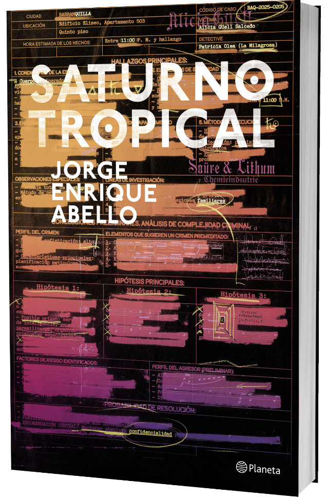 Jorge Enrique Abello debuta en la novela con una historia alucinante que entrelaza el realismo mágico, el thriller criminal y la ciencia especulativa. En una Barranquilla que parece salida de un sueño febril, el lector recorrerá pasillos encantados, laboratorios secretos, espejos sin reflejo y conversaciones filosóficas sobre la vida, el tiempo y el amor. Porque en el centro de este misterio, más que un crimen, lo que arde es la pregunta sobre lo que somos. Saturno tropical no solo es una novela negra, es un manifiesto sobre la metamorfosis de lo humano. Un viaje hipnótico por la identidad, el deseo y los límites de la materia.