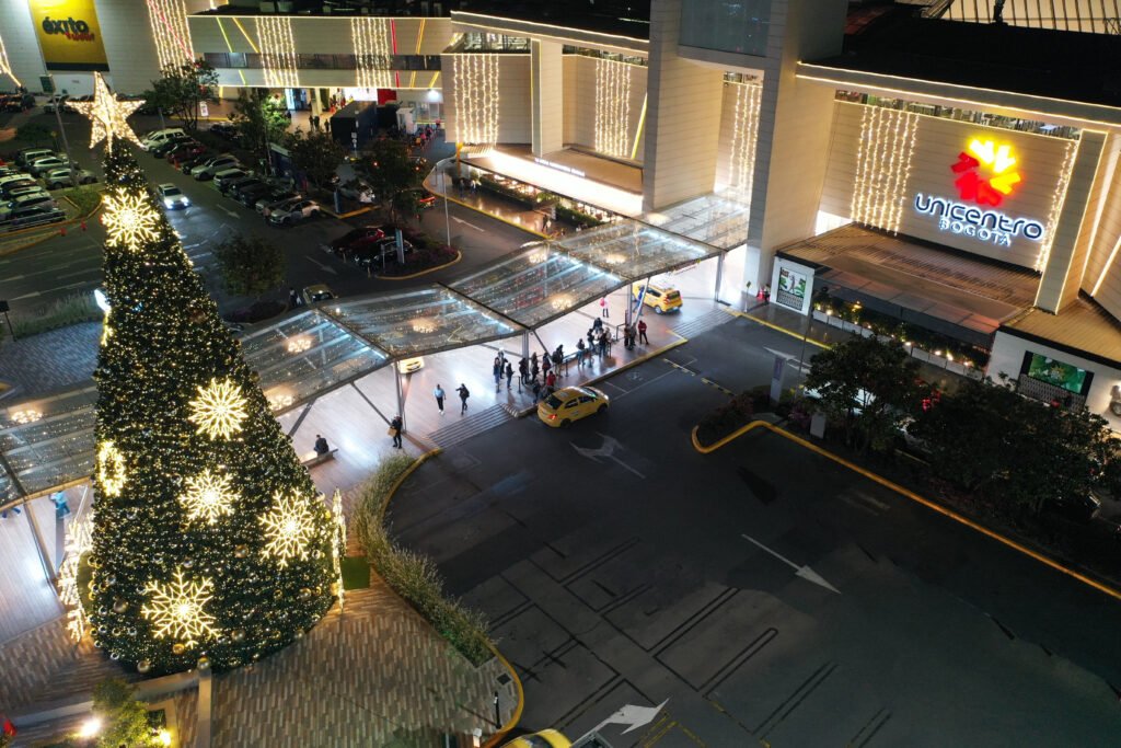 Bajo el concepto “Pasaporte Navidad”, el jurado valoró especialmente una puesta en escena integral que trascendió los pasillos del centro comercial y se proyectó con fuerza hacia la ciudad. El despliegue de iluminación exterior se consolidó como uno de los elementos más distintivos del proyecto, con las fachadas principales, cerramientos perimetrales y accesos intervenidos mediante un diseño lumínico cuidadosamente planificado, creando un corredor visual continuo que no solo embellece la infraestructura, sino que posiciona a Unicentro como un hito nocturno visible desde distintos puntos del norte de Bogotá, conectando a peatones y visitantes con el espíritu navideño desde el primer contacto con el complejo
